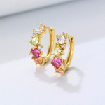 Beskrivelse: Cateleya hoops lader dig udtrykke din absolutte power! En smuk blanding af neutrale zirconia sten, violet, ferskenfarvet og hvide krystaller!