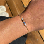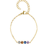Beskrivelse: Armbåndet er en smuk og farverig accessoires, der er prydet med forskellige sten i nuancer som blå, hvid, lilla og fersken. Hver sten symboliserer unikke egenskaber og energier, hvilket gør armbåndet både stilfuldt og meningsfuldt.
