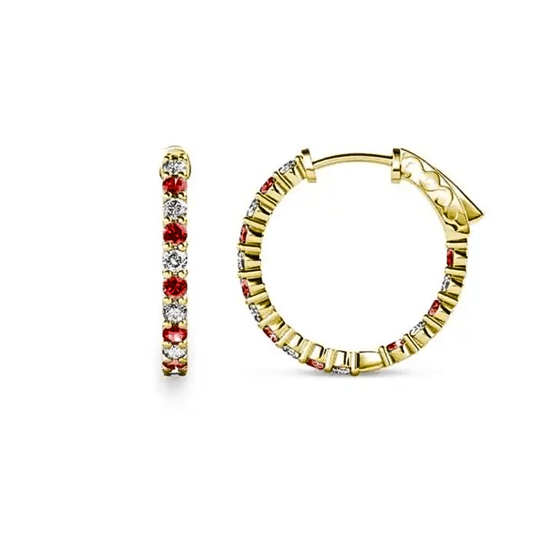 Beskrivelse: Cassandra hoops lader dig udtrykke din absolutte power! En smuk blanding af neutrale zirconia sten og blodrøde krystaller, som er lavet efter flammefusionsfremstilling af ædelsten metoden.