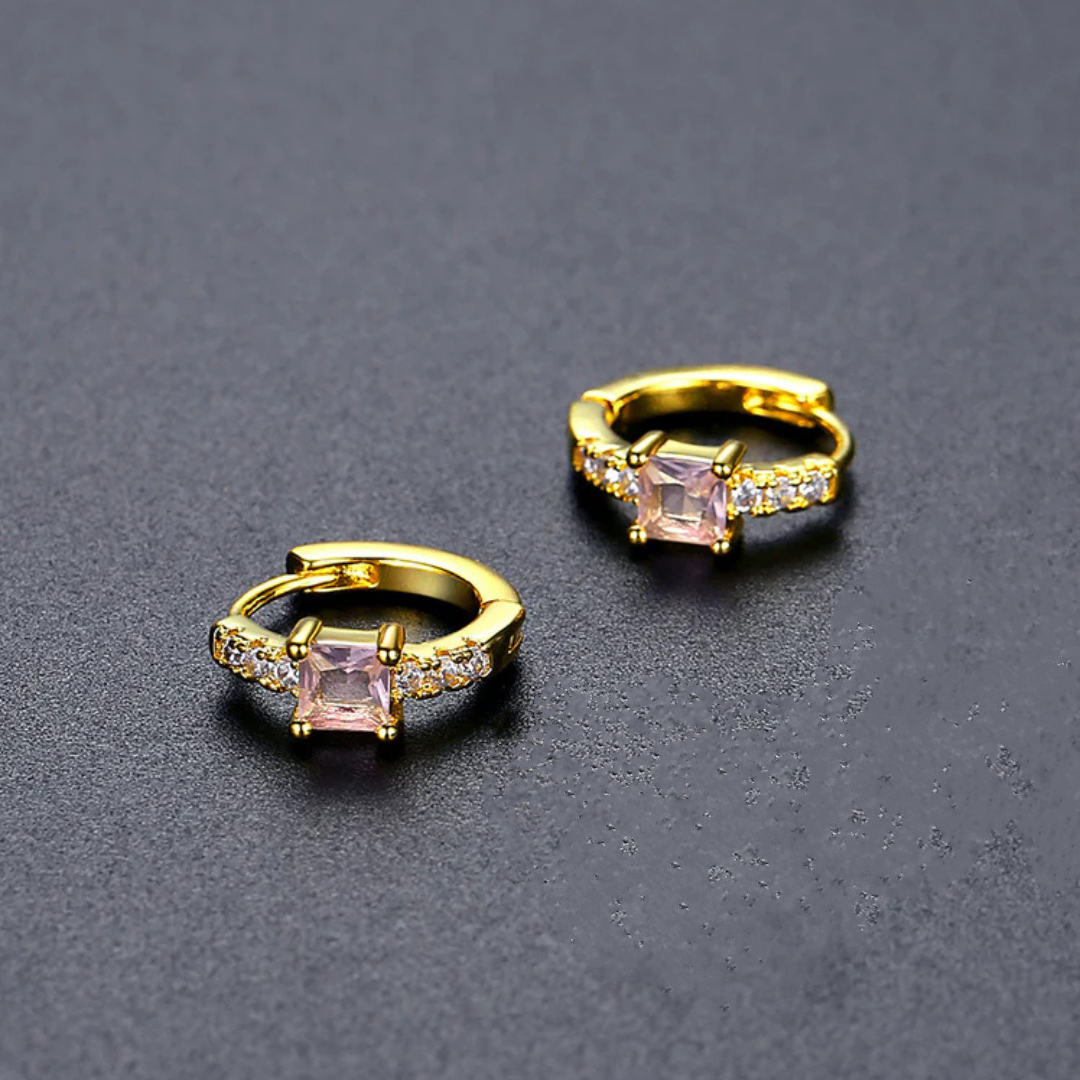 Beskrivelse: Ofelia hoops lader dig udtrykke din absolutte power! En smuk blanding af neutrale zirconia sten og 1 firkantet pink krystal