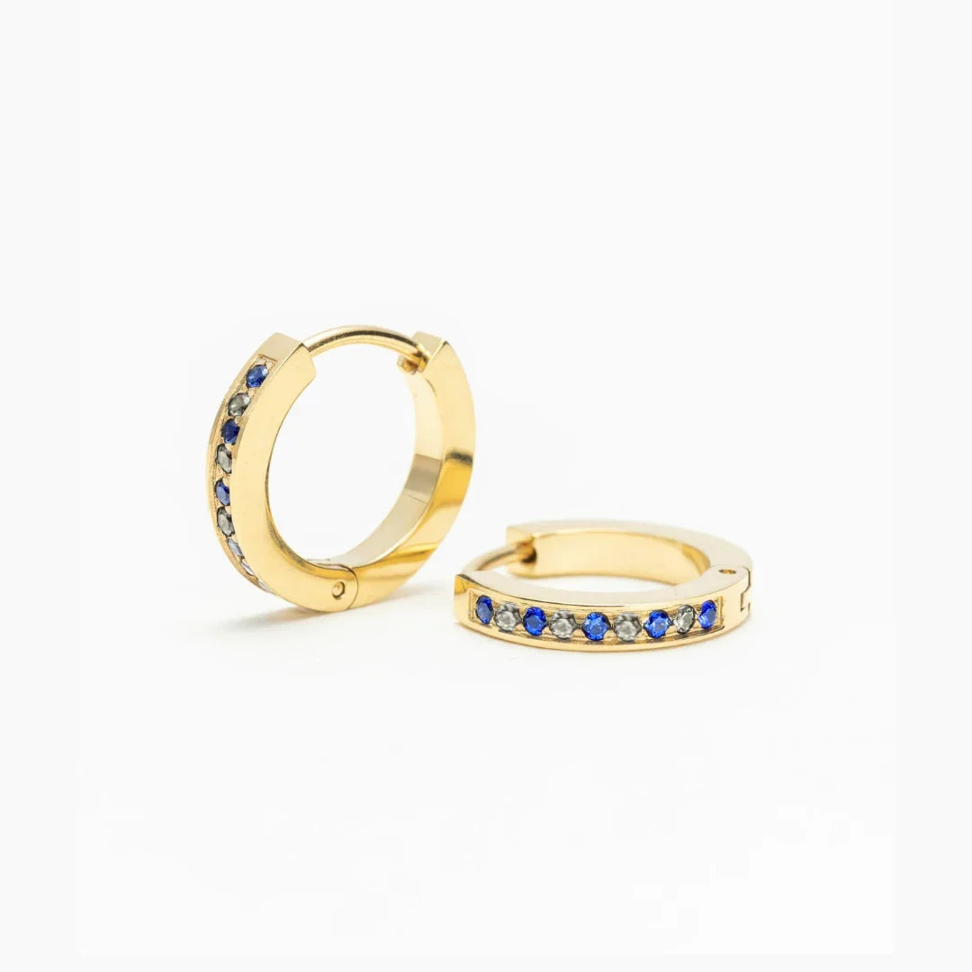 Beskrivelse: Tabitha øreringe er elegante og iøjefaldende, prydet med smukke blå/hvide krystaller, der tilføjer et strejf af glamour. Deres design kombinerer moderne stil med tidløs finesse, hvilket gør dem ideelle til både festlige lejligheder og hverdagsbrug.