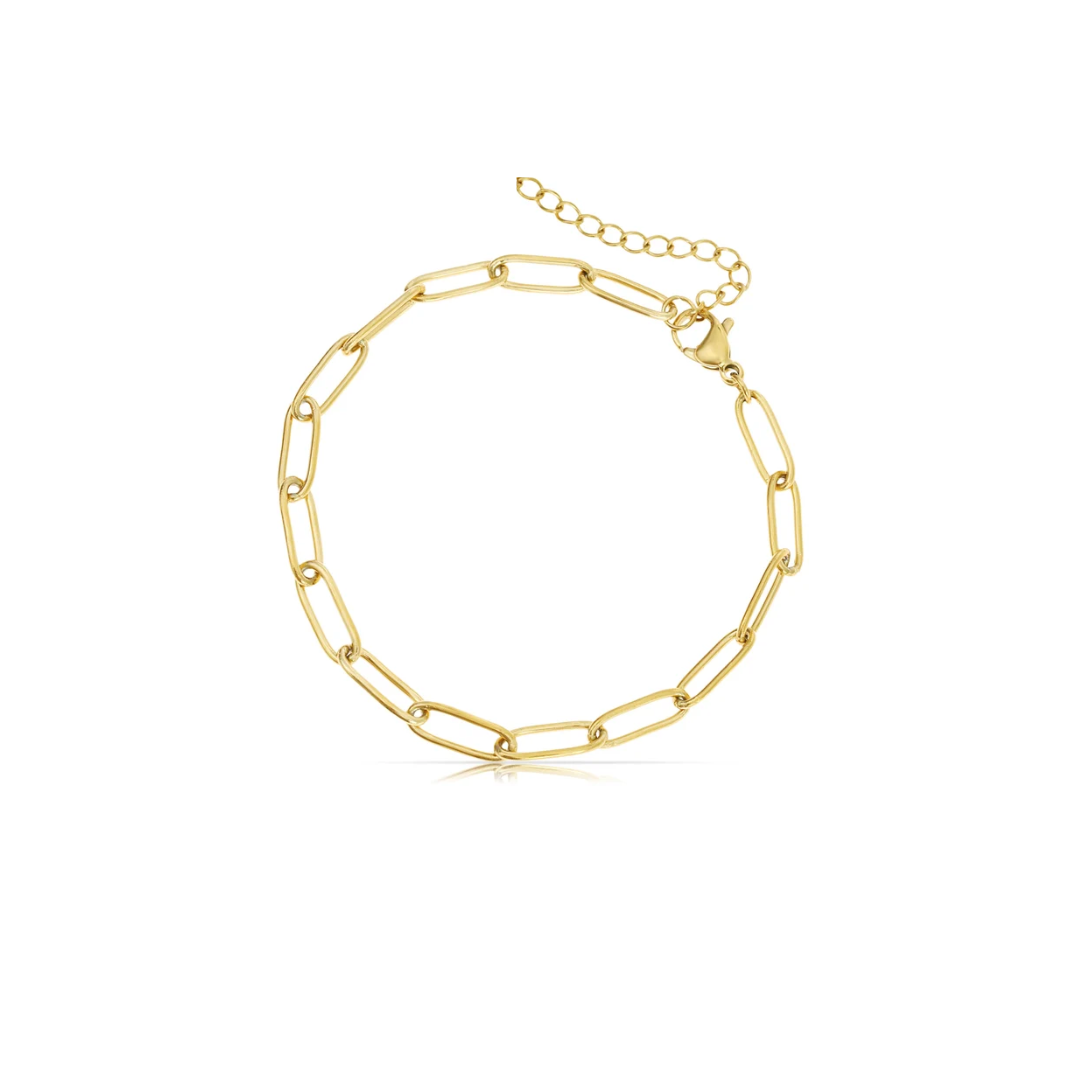 Beskrivelse:  Zara i guld har et elegant papirklip-design, der giver det et unikt og moderne udtryk. Den glatte overflade og de enkle linjer skaber en minimalistisk skønhed, der gør det velegnet til enhver lejlighed. Armbåndet er både stilfuldt og tidløst, perfekt til at tilføje et strejf af elegant til dit look.
