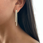 Beskrivelse: Lisa double øreringene er elegante og iøjefaldende, prydet med smukke hvide krystaller, der tilføjer et strejf af glamour. Deres design kombinerer moderne stil med tidløs finesse, hvilket gør dem ideelle til både festlige lejligheder og hverdagsbrug.