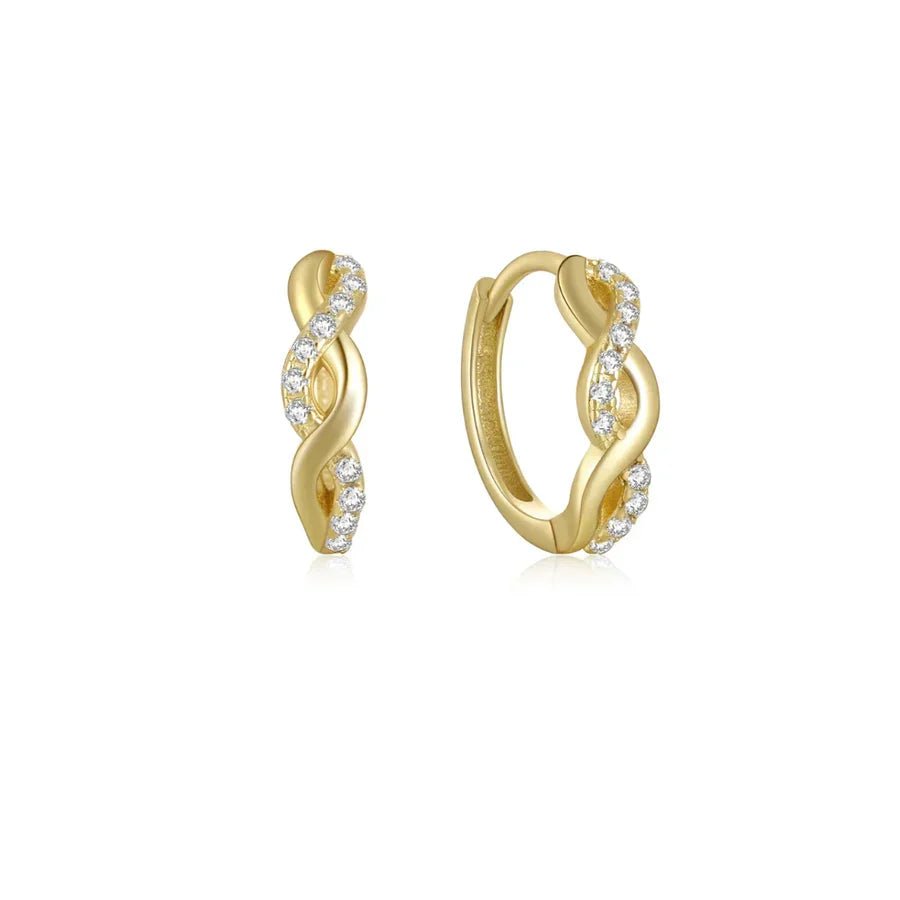 Delikate hoops i guld med et snoet, bølgende design prydet med klare sten. Et feminint statement, der udstråler ro, styrke og elegance.