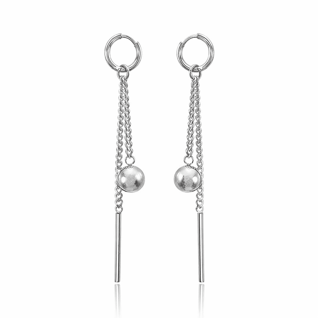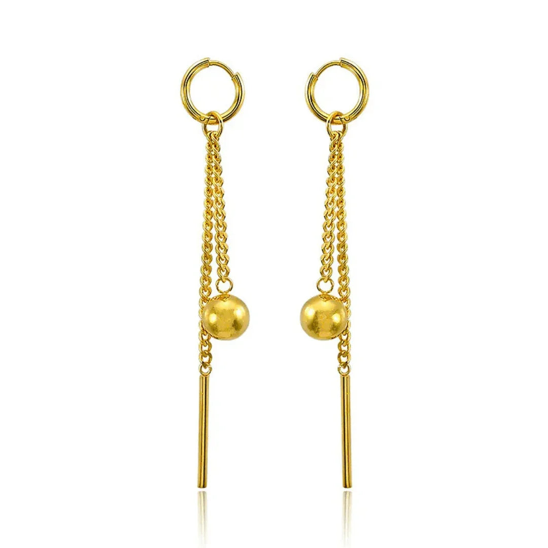 Beskrivelse: Elegante og moderne øreringe i guld med en enkel kæde og en slank stang. Perfekte til både arbejde og særlige lejligheder.