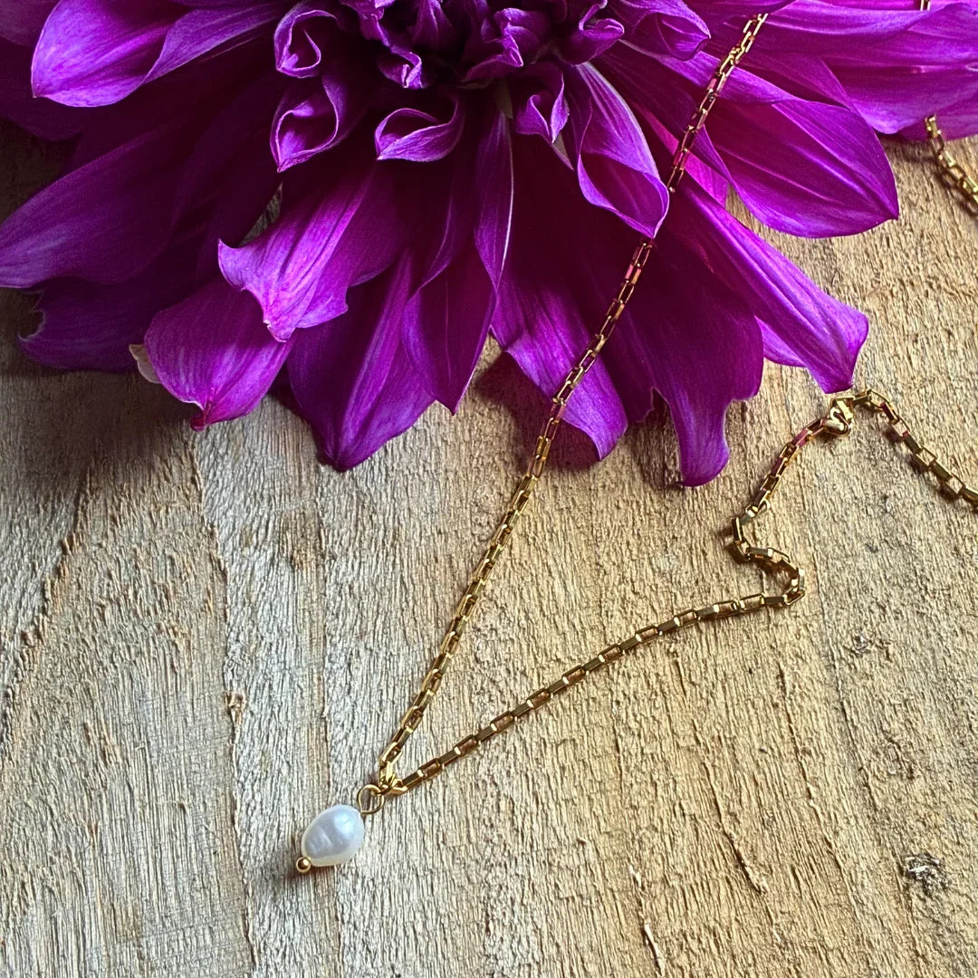 Beskrivelse:  Laura halskæden er med en ferskvandsperle, ukurant kæde som både er et tidløst og yndigt smykke. Halskæden kan stå alene eller kombineres med andre enkle halskæder.
