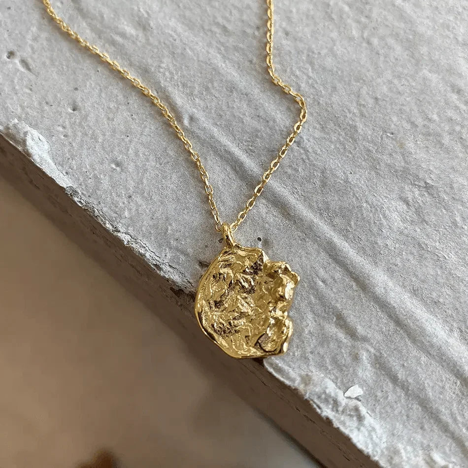 Beskrivelse: Mina halskæde prydes af et unikt sølvstykke, der skiller sig ud med sin uregelmæssige form og karakteristiske overflade. Det sjældne design tilføjer en kunstnerisk dimension, mens halskæden stråler af elegance og personlighed. En perfekt kombination af det rå og det klassisk